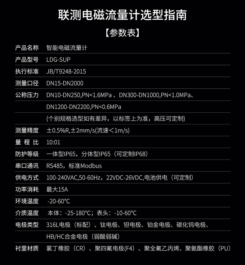 LDG-SINF系列智能電磁流量計適用于化工助劑、海綿城市、給水排水、水利灌溉、水處理、污水處理(環保污水控制、化工污水、電鍍污水)、造紙漿液(紙漿)、泥漿、醫藥原料、食品等工農業的生產公司過程流量測量和控制,標配485通訊功能。