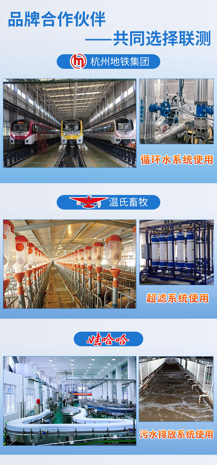 近年來(lái),聯(lián)測(cè)儀表廣泛應(yīng)用于各大領(lǐng)域,與國(guó)內(nèi)品牌杭州地鐵集團(tuán)、溫氏畜牧、娃哈哈......達(dá)成合作,專(zhuān)業(yè)的技術(shù),敬業(yè)的服務(wù)贏得了諸多企業(yè)的信賴(lài)與支持。本次合作也給客戶(hù)留下了良好的印象,好評(píng)連連,溫州繞城高速公路有限公司表示,后續(xù)多個(gè)站點(diǎn)會(huì)批量使用我司電磁流量計(jì)。