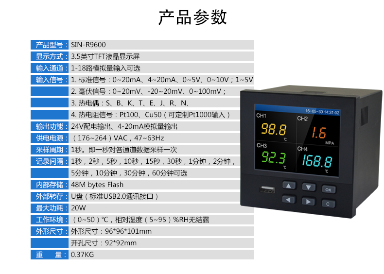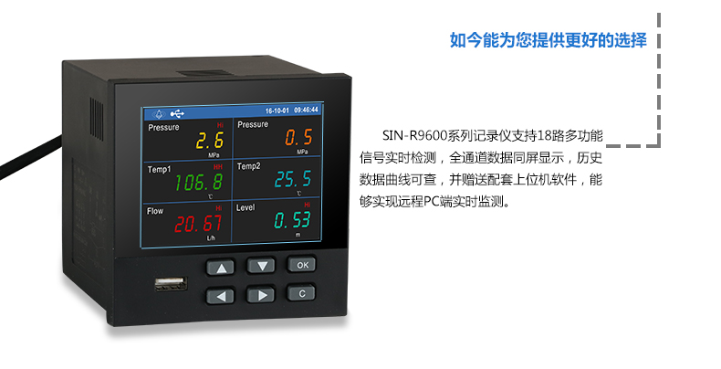 SIN-R9600無紙記錄儀內部采用高速、高性能32位cortex-M4微處理器。電路板經過“防腐、防潮、防塵”三防涂覆處理。高性能儀表電源有強大的抗干擾能力,能有效抑制外部諧波干擾,大大提高了整機的穩定性。