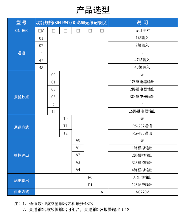 SIN-R6000C系列彩色無紙記錄儀48路萬能輸入(可組態選擇輸入:標準電壓、標準電流、熱電偶、熱電阻、頻率、毫伏等)。可帶18路報警輸出,12個變送輸出,RS232/485通訊接口,以太網接口,微型打印機接口和USB接口,SD卡插座;可提供傳感器配電;具有強大的顯示功能,實時曲線顯示,歷史曲線追憶,棒圖顯示,報警列表顯示。